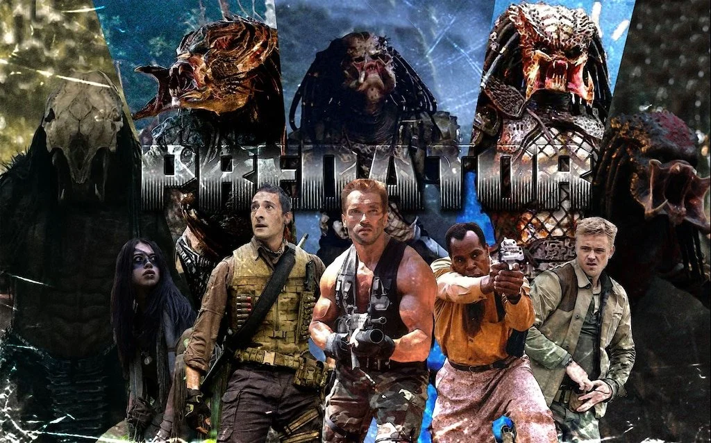 The Predator franchise centers on recurring storylines in which human characters encounter a technologically advanced extraterrestrial species that hunts other lifeforms for sport. These extraterrestrials—credited as Predators in the films and alternatively named Yautja, Hish-Qu-Ten, and Skin Thieves in expanded universe media—serve as antagonists in largely self-contained narratives that blend military science fiction, action, and horror elements.